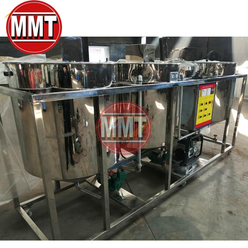 Feature highlights:This small palm oil refining machine is designed for efficient edible oil production, featuring a 4-step refining process (deacidification, degumming, bleaching, deodorization) to ensure high-quality output. Made of food-grade stainless steel, it includes an automatic temperature control device, thermal insulation, and silent universal wheels for convenient use and movement. Suitable for various oils like soybean, sunflower, and peanut oil, it offers energy-saving operation with a capacity of 1-2 tons per day. The machine supports both restaurant and industrial use, with a robust gearbox and pressure vessel core components ensuring durability.